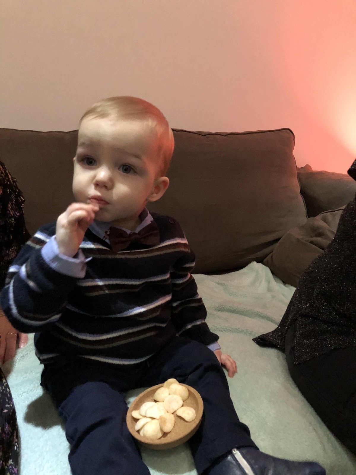 En tevreden dat hij was..in zijn kerstoutfit.. zo een mooi strikje had hij op zijn hemdje, net als papa.